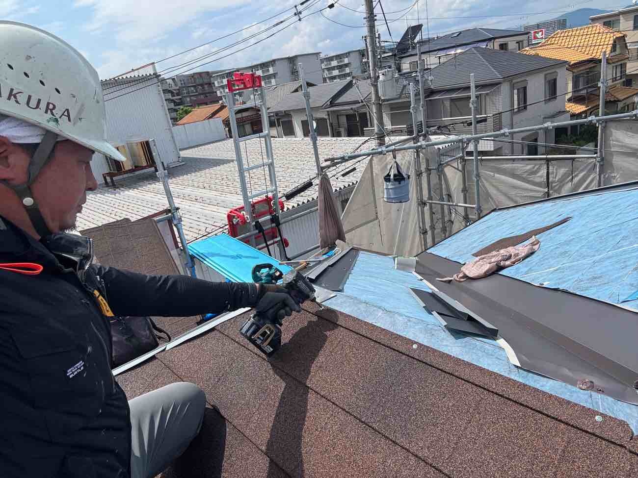 『改修用スターター取付』屋根材を固定し雨水をスムーズに流します